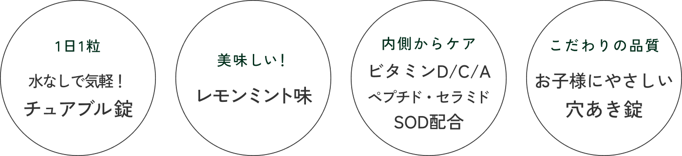 紫外線によってゆらぎやすい肌状態に内側からアプローチし、すこやかな肌を保つサポートをするサプリメントです。